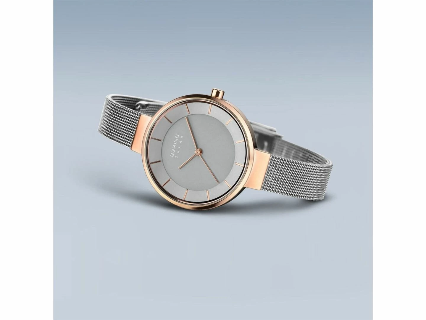 - La montre lĂ©gĂšre et ultra-fine SOLAR reste discrĂšte Ă votre poignet et se caractĂ©rise par de fins dĂ©tails, ainsi quÂun bracelet en maille milanaise gris. La batterie spĂ©ciale, rechargeable par nÂimporte quelle source de lumiĂšre, dure de 6 Ă 12 mois en une seule charge.
