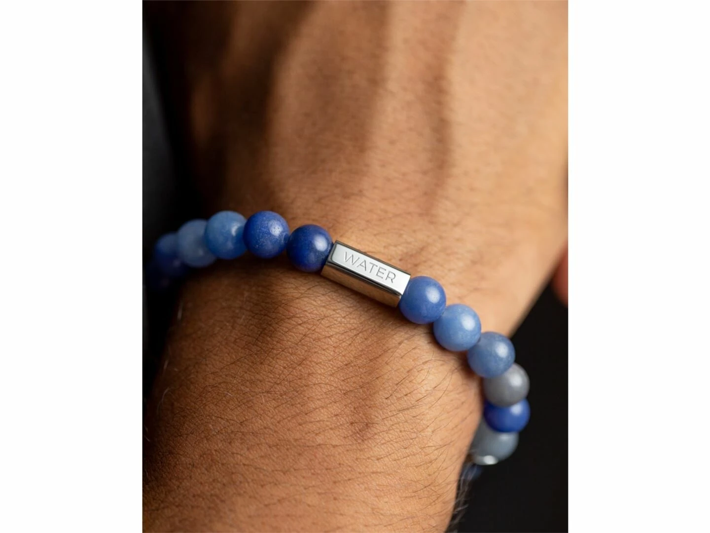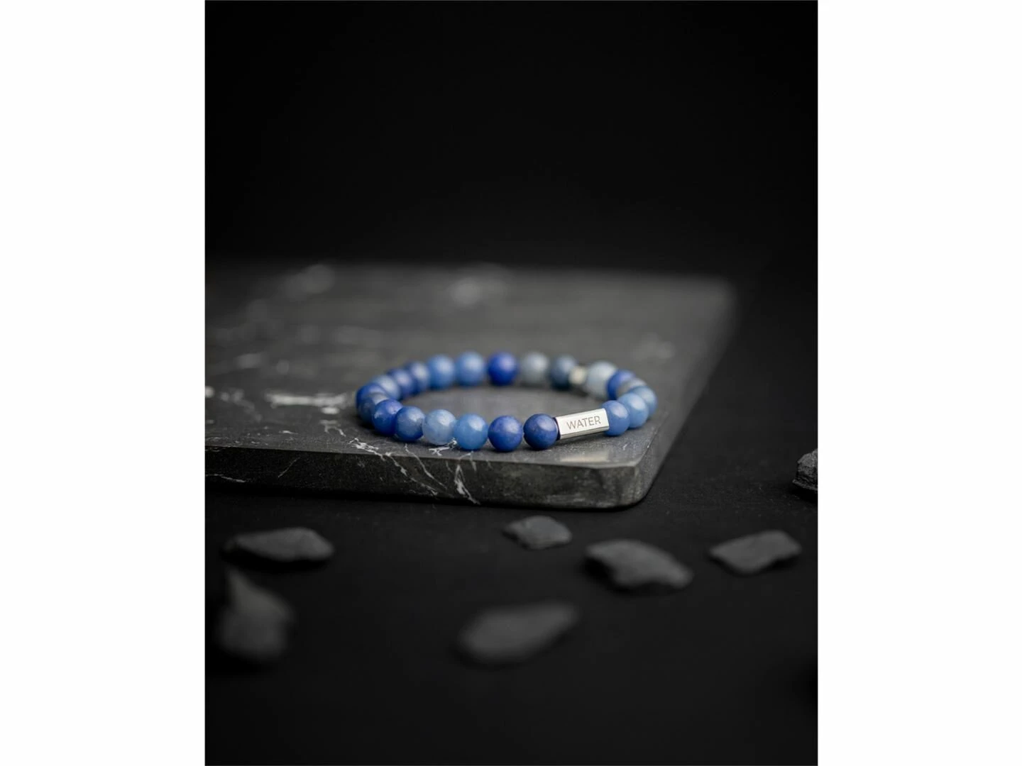 - Le bracelet Eau reprĂ©sente l’Ă©lĂ©ment Eau et fait partie des cinq Ă©lĂ©ments de base qui composent le monde. L’eau s’humidifie et descend dans les endroits bas et donne du froid. L’eau est liĂ©e Ă l’hiver, la saison oĂč la nature se mĂ©nage pour le prochain cycle. L’eau est liĂ©e au Nord, lĂ oĂč le soleil ne vient pas, Ă la noirceur de la nuit et au goĂ»t salĂ© de l’eau de mer.