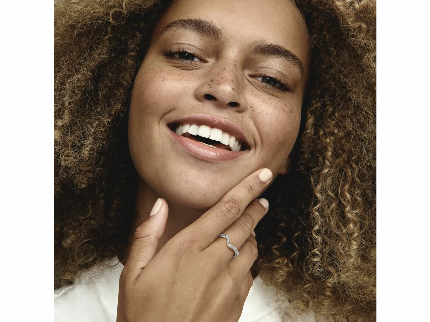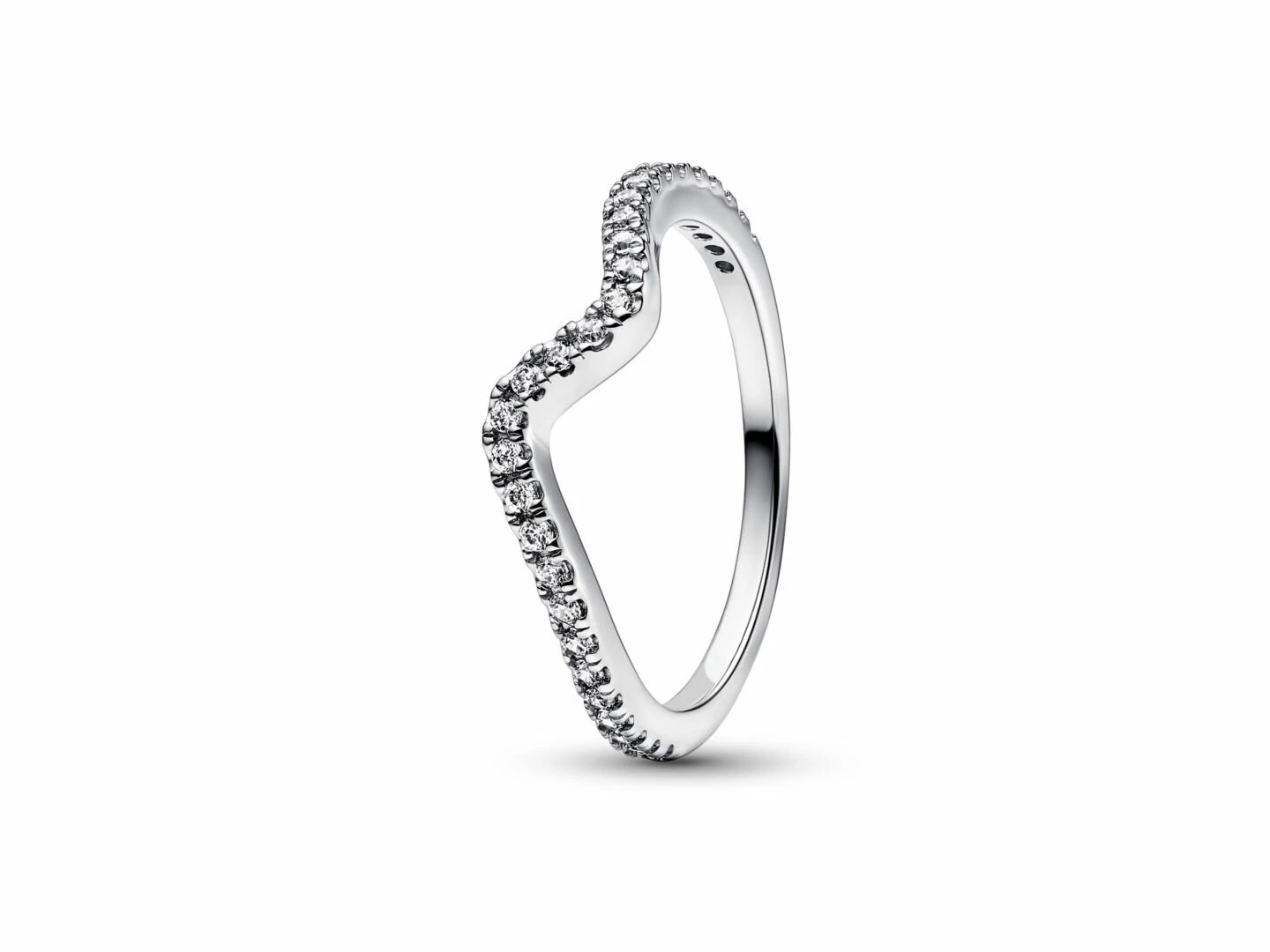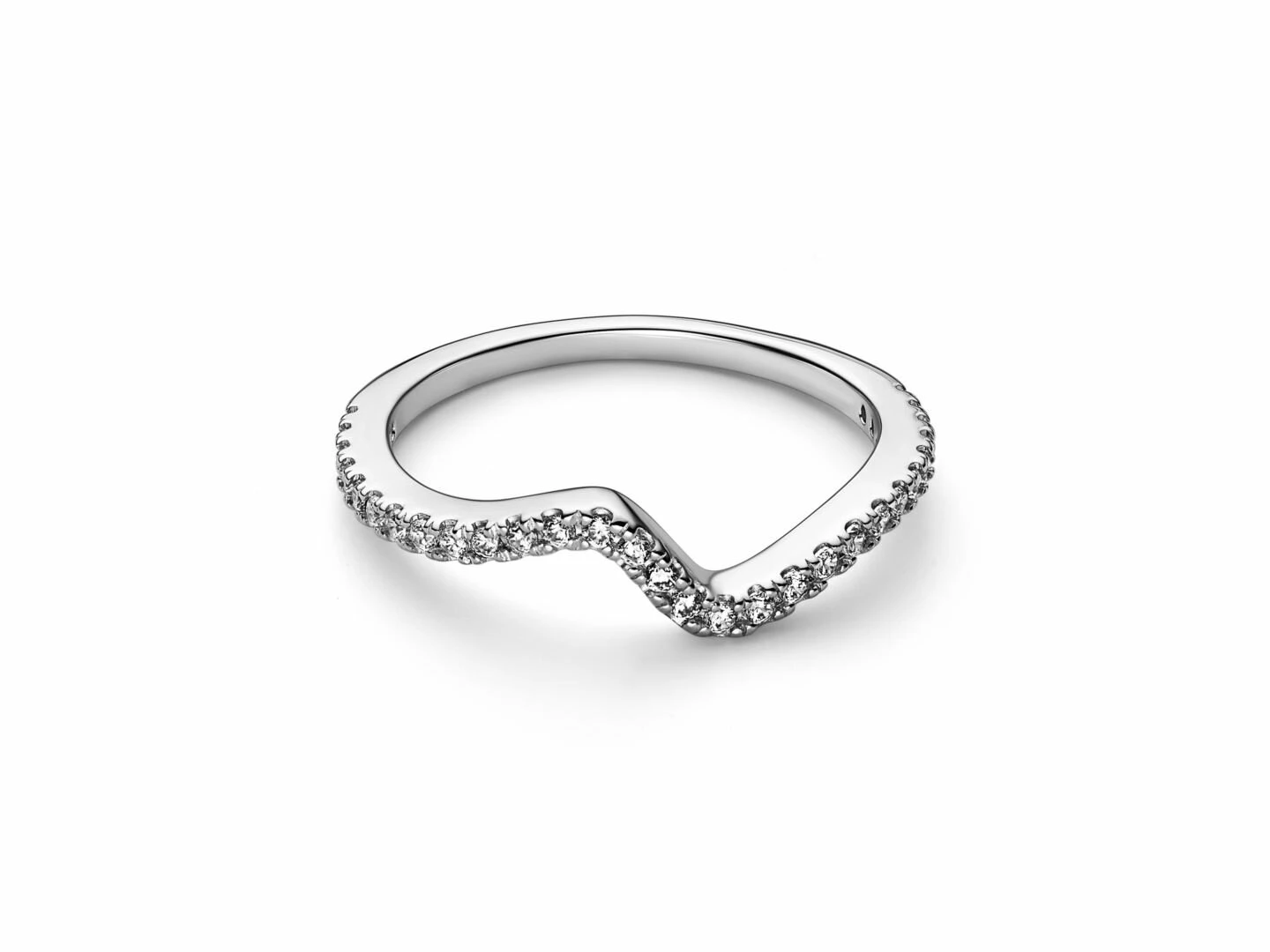 - La Bague Vague Scintillante se distingue par son design incurvé qui évoque le mouvement d’une vague, et est ornée à l’avant d’une rangée d’oxydes de zirconium incolores, taille rond brillant. Portez-la seule ou superposée pour un look contemporain.