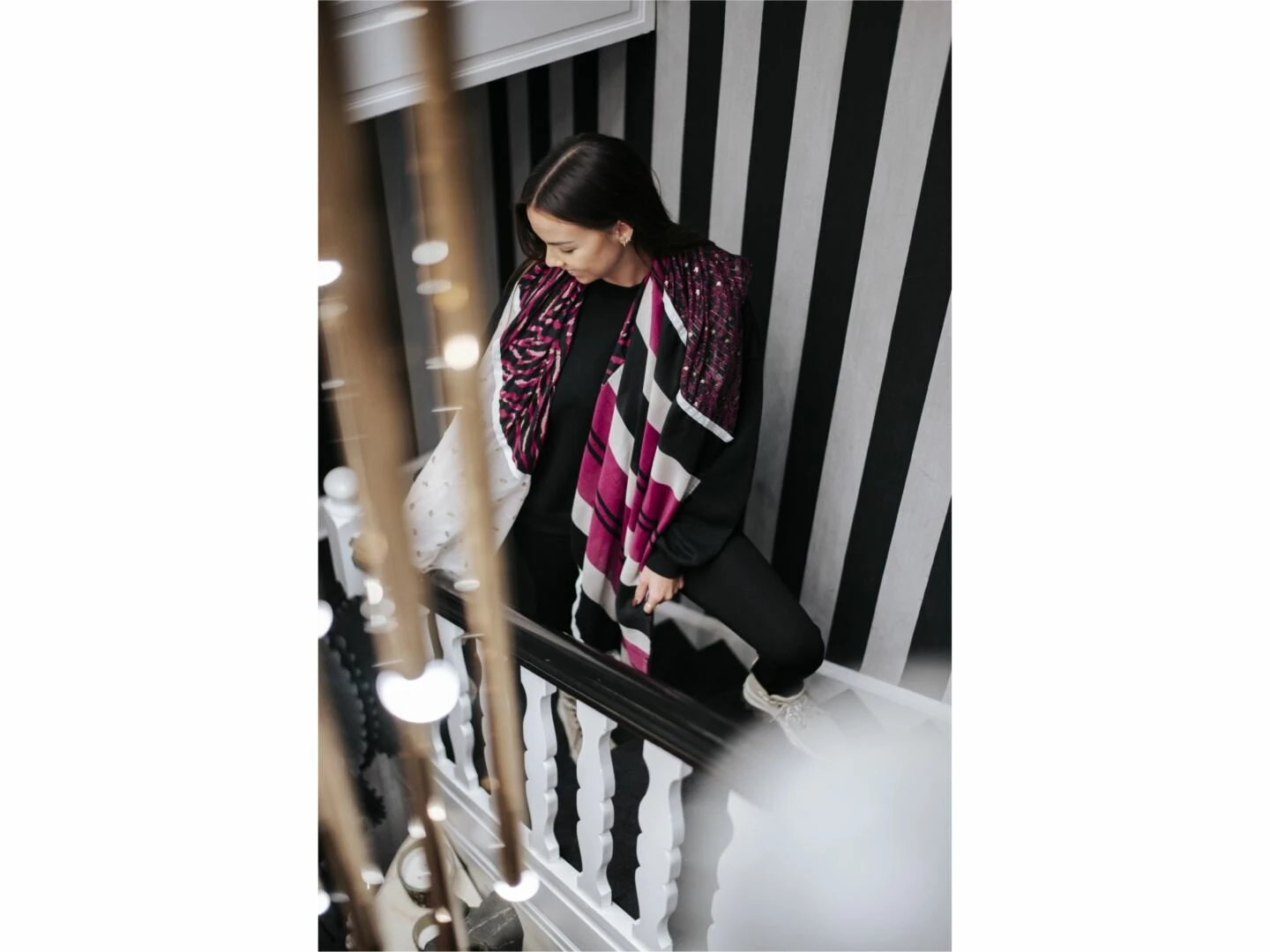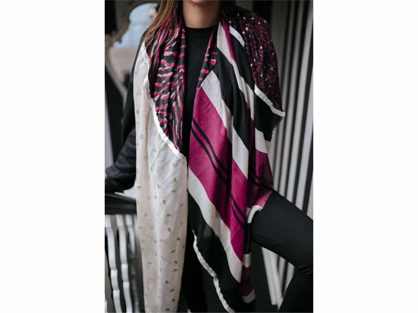 - Le carré Shanna est un assemblage de 4 morceaux de tissus différents, agrémenté de rubans décoratifs et assortis.